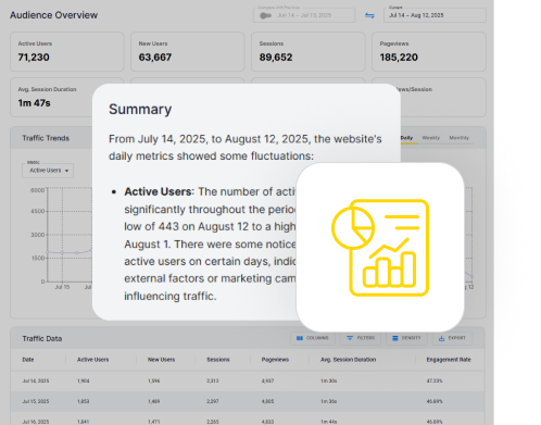 The platform turns your data into clear, concise summaries and trends in plain English – no need to analyse anything.