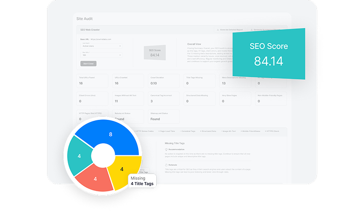 Crawl your entire site to uncover technical SEO issues — broken links, missing meta tags, slow pages, mobile-friendliness problems, and more. Get prioritised recommendations so you fix what matters first.