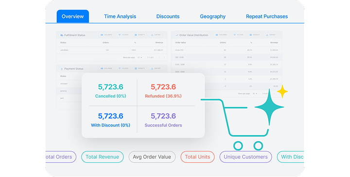 Analyse order patterns, fulfilment speed, and sales trends with period-over-period comparisons to uncover growth opportunities.