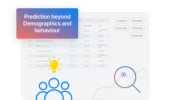 Go beyond demographics and past behaviour. Pixel scores every visitor by conversion likelihood, churn risk, and predicted lifetime value — using signals from their actual journey, not just their last click. Build custom audiences with drag-and-drop filters across touchpoints, channels, journey stages, and propensity scores. See real-time audience size as you refine your targeting, then sync segments directly to your ad platforms.